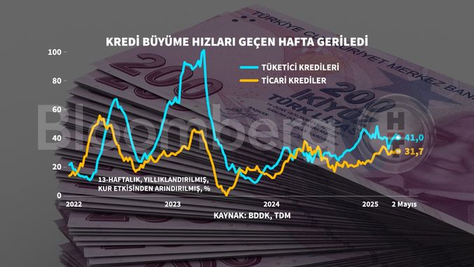 Tüketici kredilerindeki düşüş ivmesi görüldü. Tüketici kredilerinde büyüme yüzde 41 olarak kaydedildi.