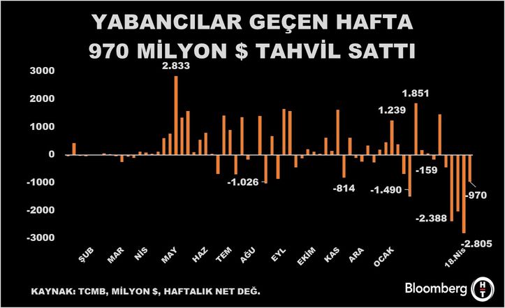Aynı hafta DİBS (Kesin Alım) net satımları 970 milyon dolar oldu.
